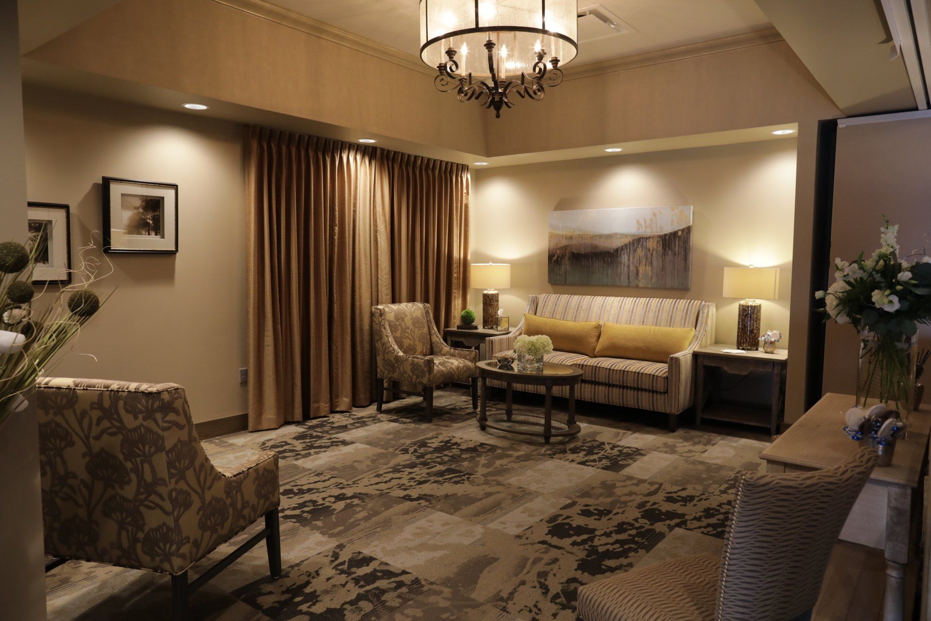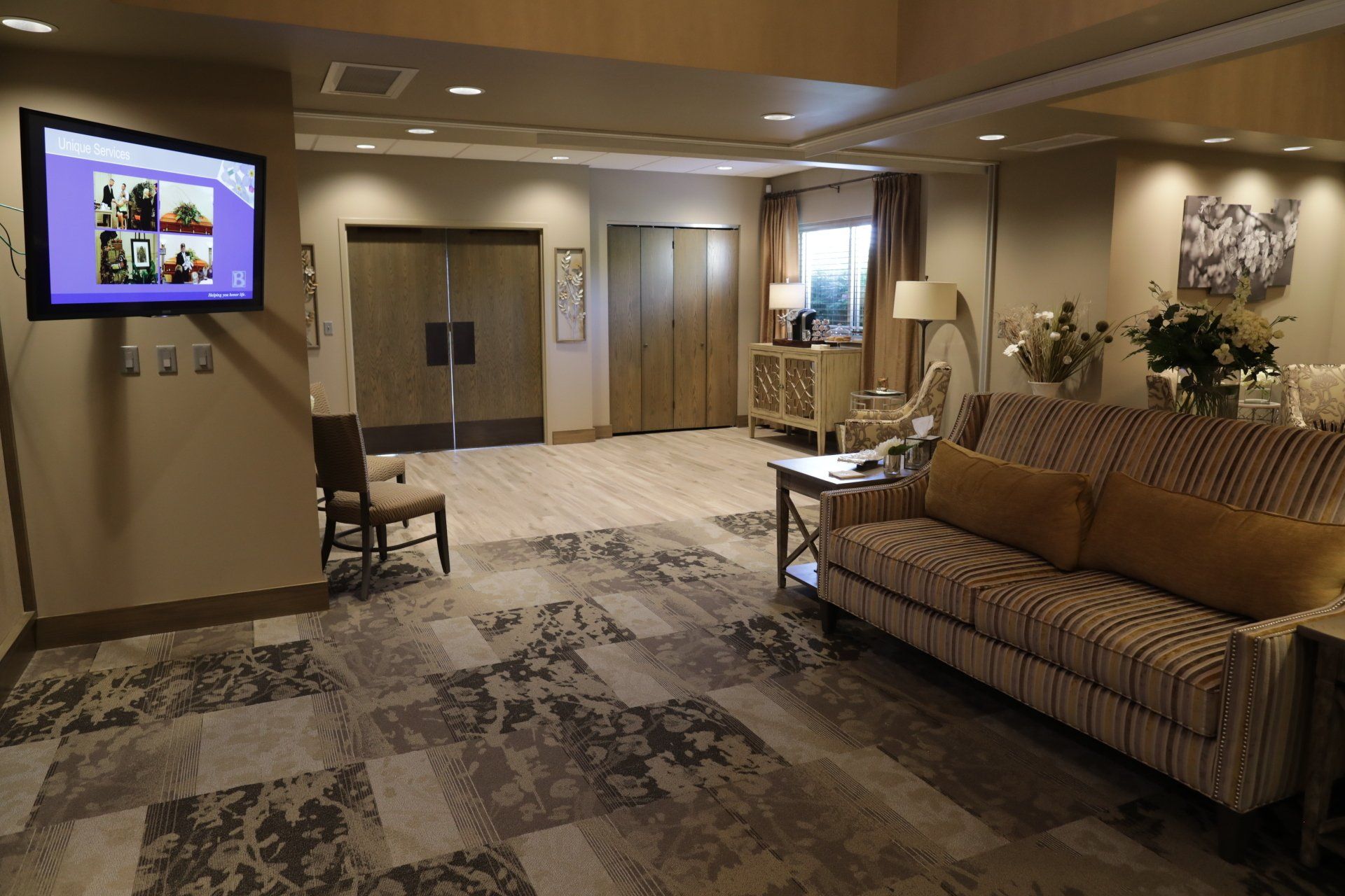 Private Family and Children’s Lounges are located in the lower level of our Cave Springs facility. A contemporary design helps to offer relaxation and respite from the obligations of services.