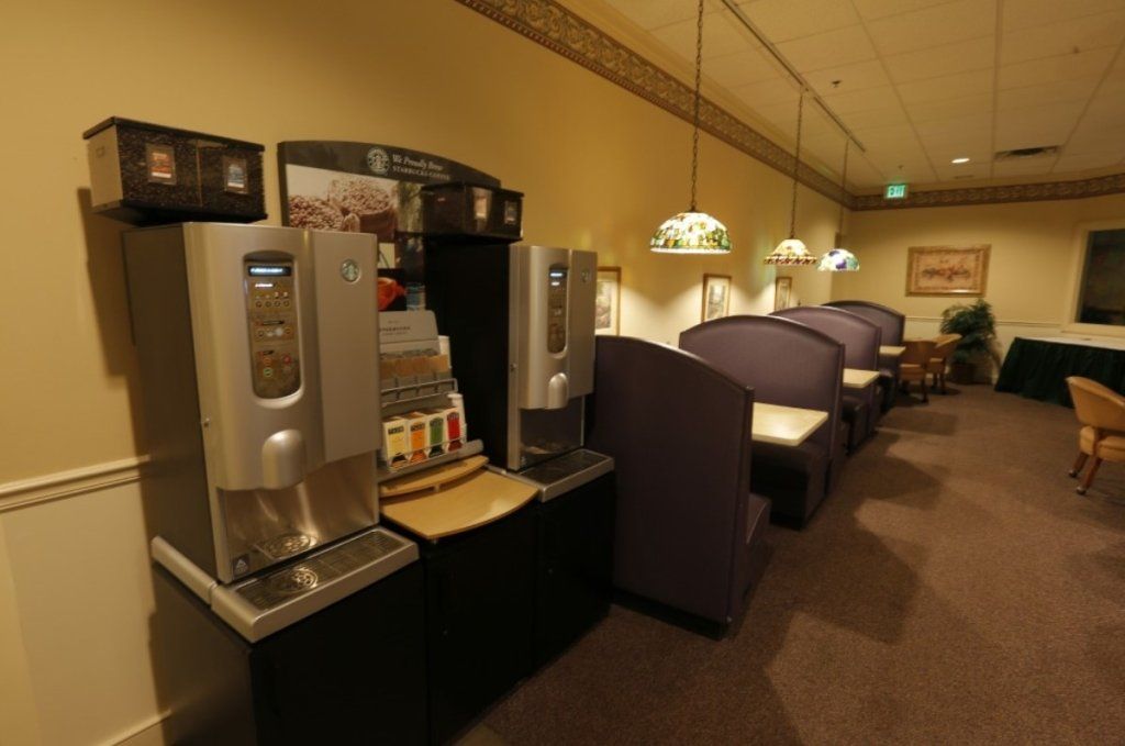 Refreshments are available in the self-serve kitchenette.